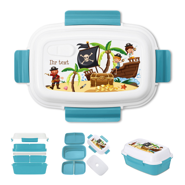 Diese Lunchbox mitPiraten-Motiv ist perfekt geeignet, um einen Imbiss oder das Mittagessen mit in die Schule oder zu Klassenfahrten zu nehmen.